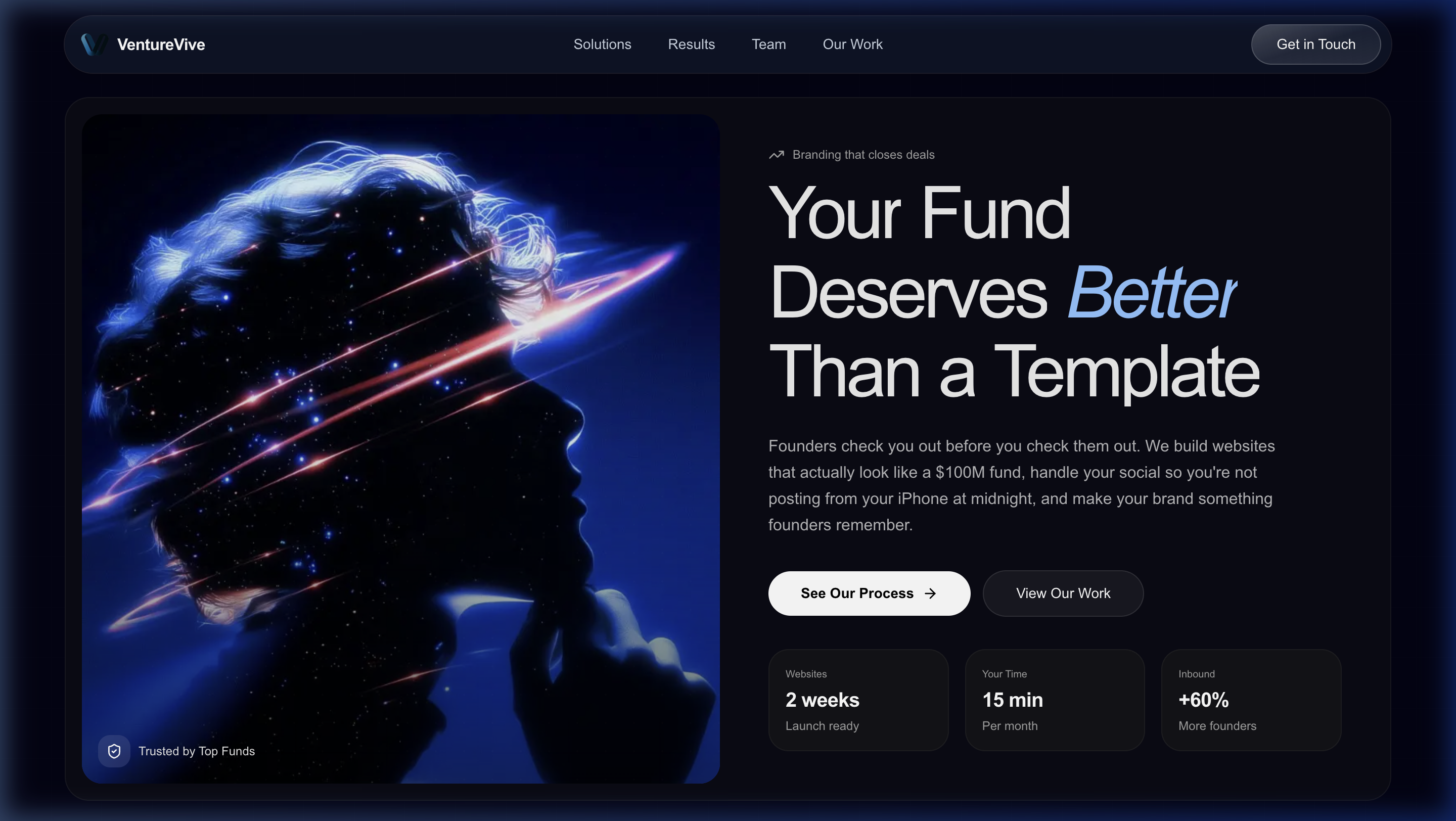 We design websites for newly launched VC funds. Clean, fast, built to make you look established.